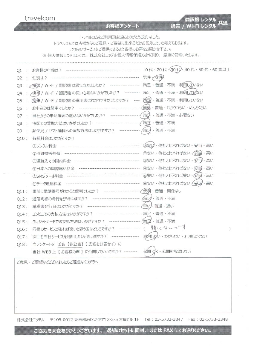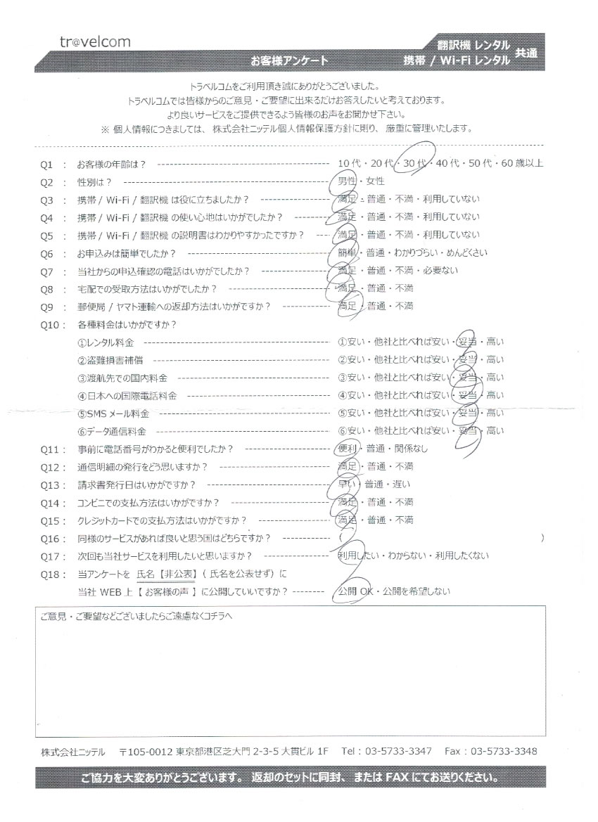 お客様からいただいたアンケートの中から【公開 OK 】と記載のアンケートを掲載します。(日付はアンケート受領日)