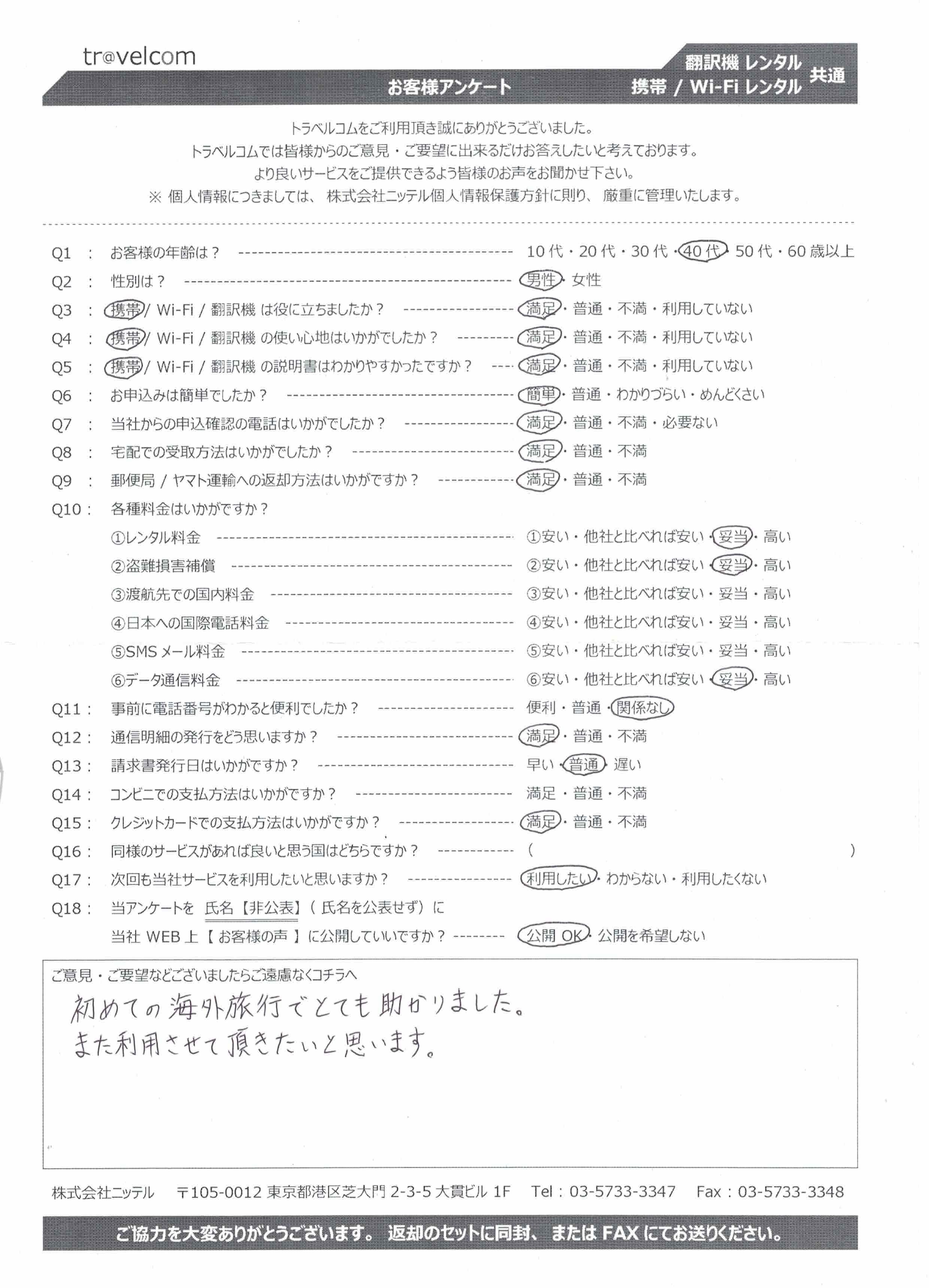 お客様からいただいたアンケートの中から【公開 OK 】と記載のアンケートを掲載します。(日付はアンケート受領日)