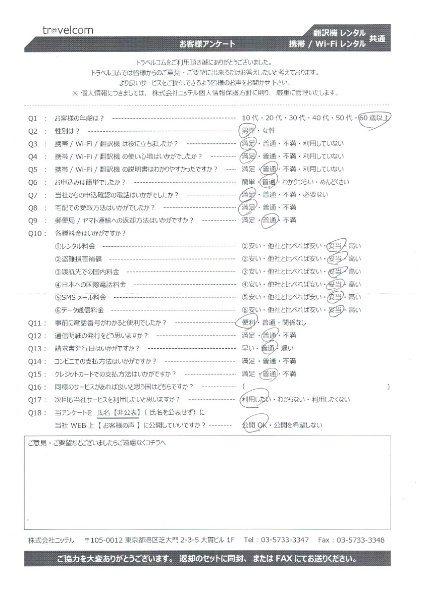 原則【公開 OK 】のアンケートは全て掲載しますが、公序良俗に反する、個人の特定につながるなど、適当でないと判断した場合は掲載しません。