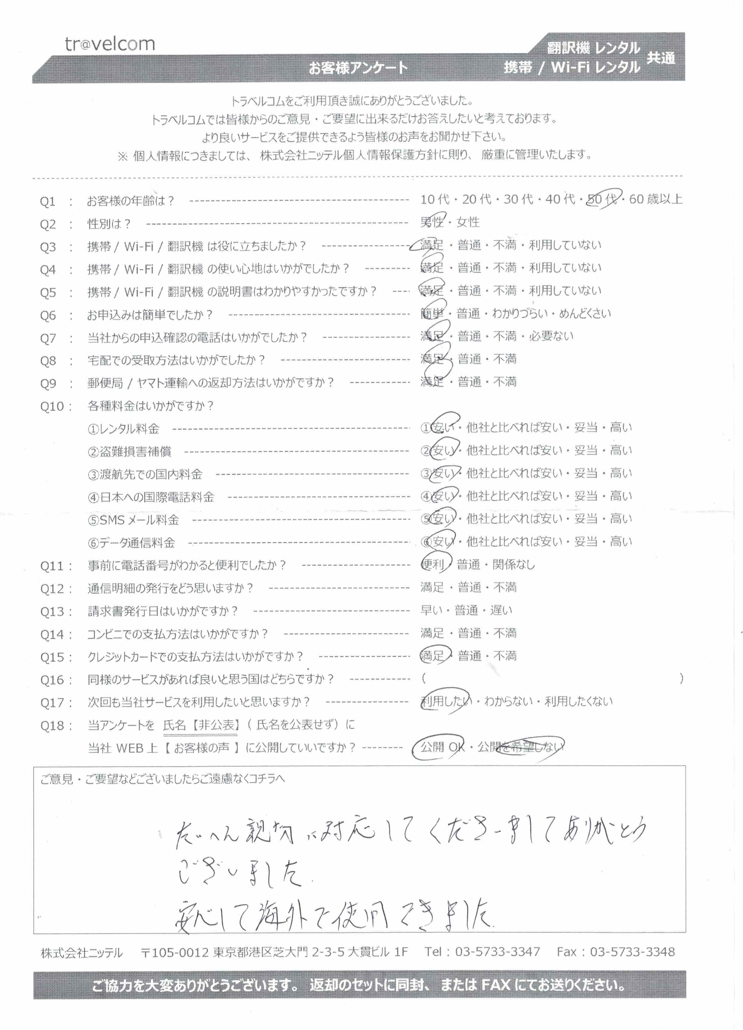 お客様からいただいたアンケートの中から【公開 OK 】と記載のアンケートを掲載します。(日付はアンケート受領日)