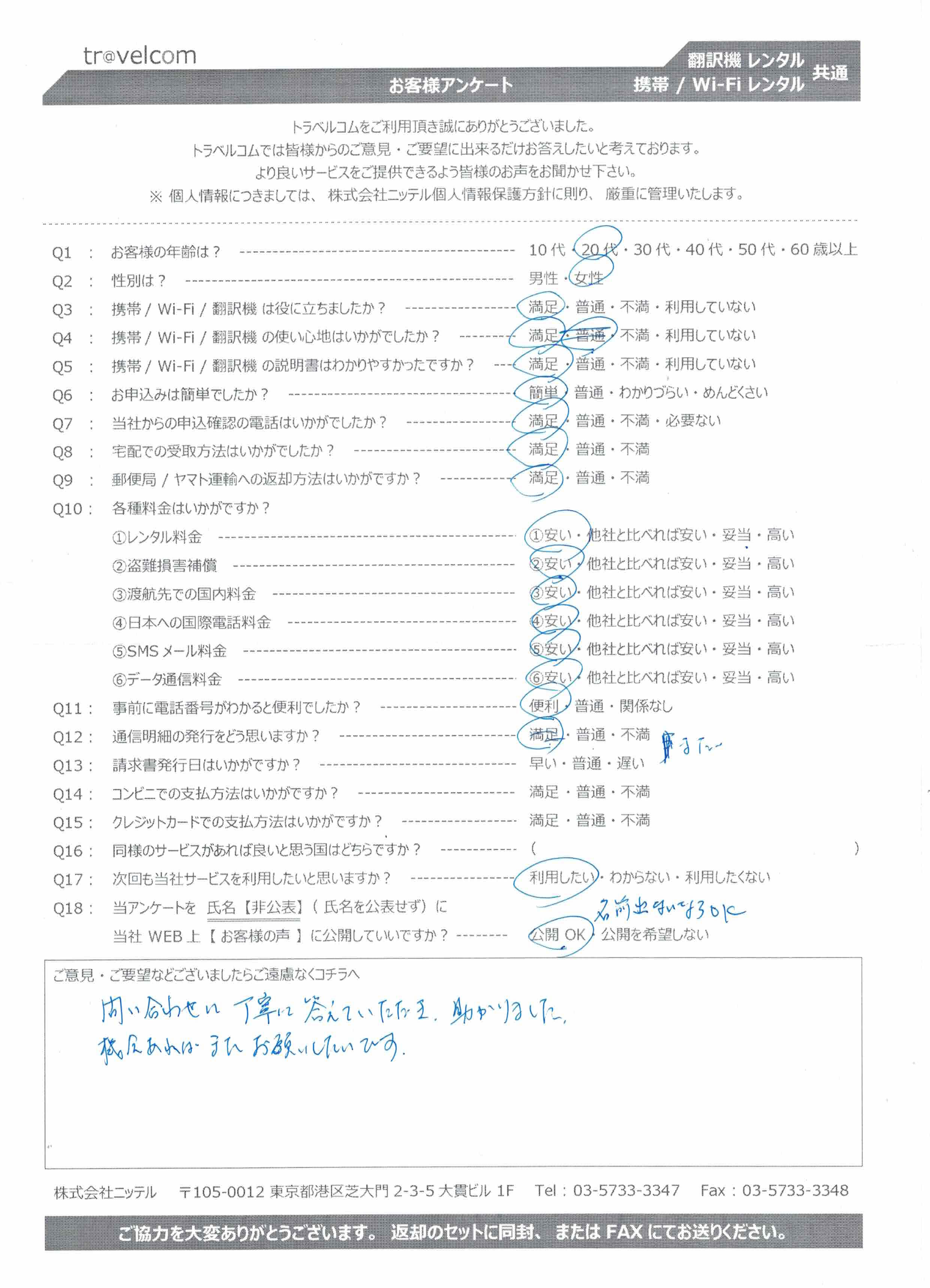 原則【公開 OK 】のアンケートは全て掲載しますが、公序良俗に反する、個人の特定につながるなど、適当でないと判断した場合は掲載しません。