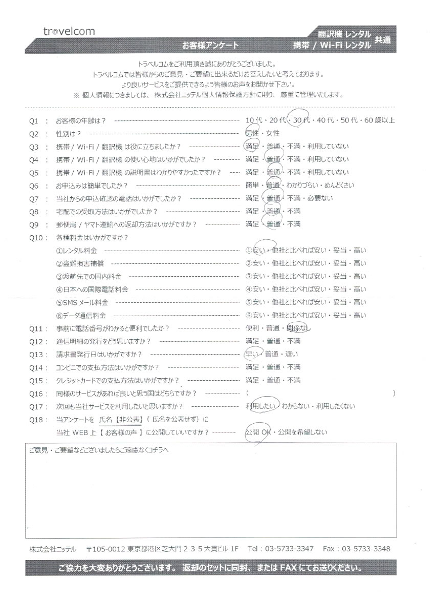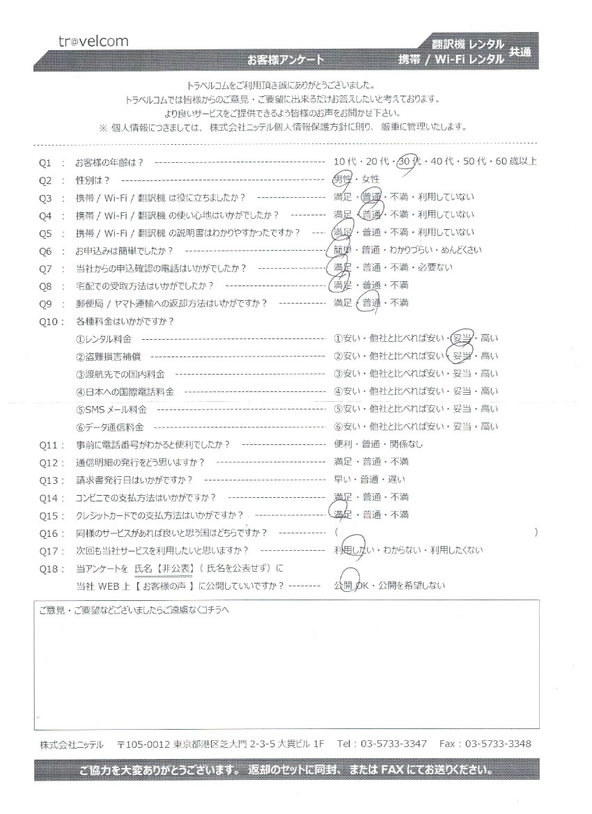 お客様からいただいたアンケートの中から【公開 OK 】と記載のアンケートを掲載します。(日付はアンケート受領日)