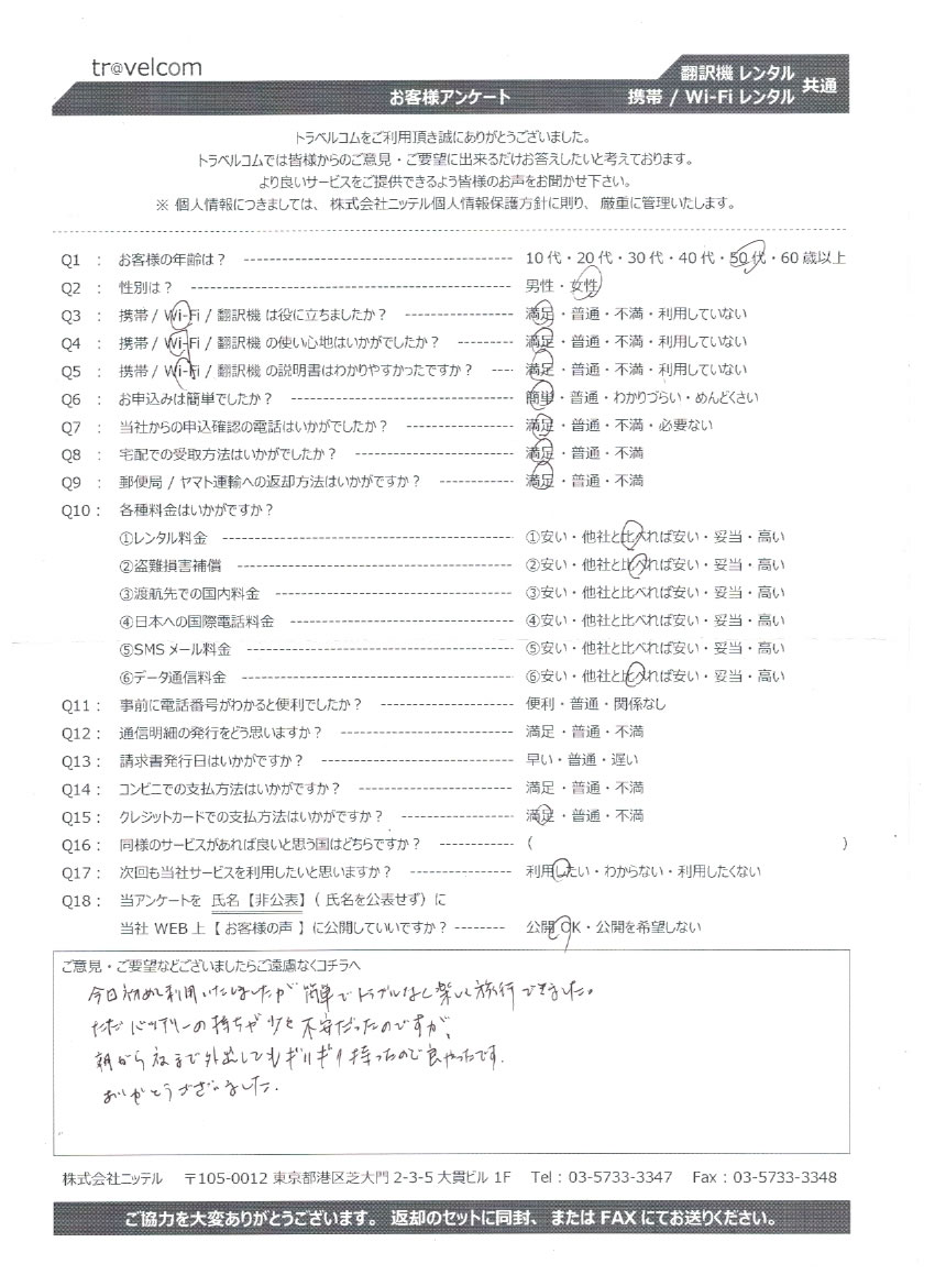 お客様からいただいたアンケートの中から【公開 OK 】と記載のアンケートを掲載します。(日付はアンケート受領日)