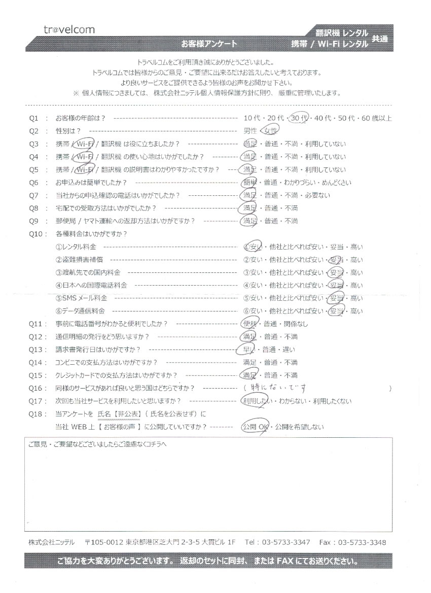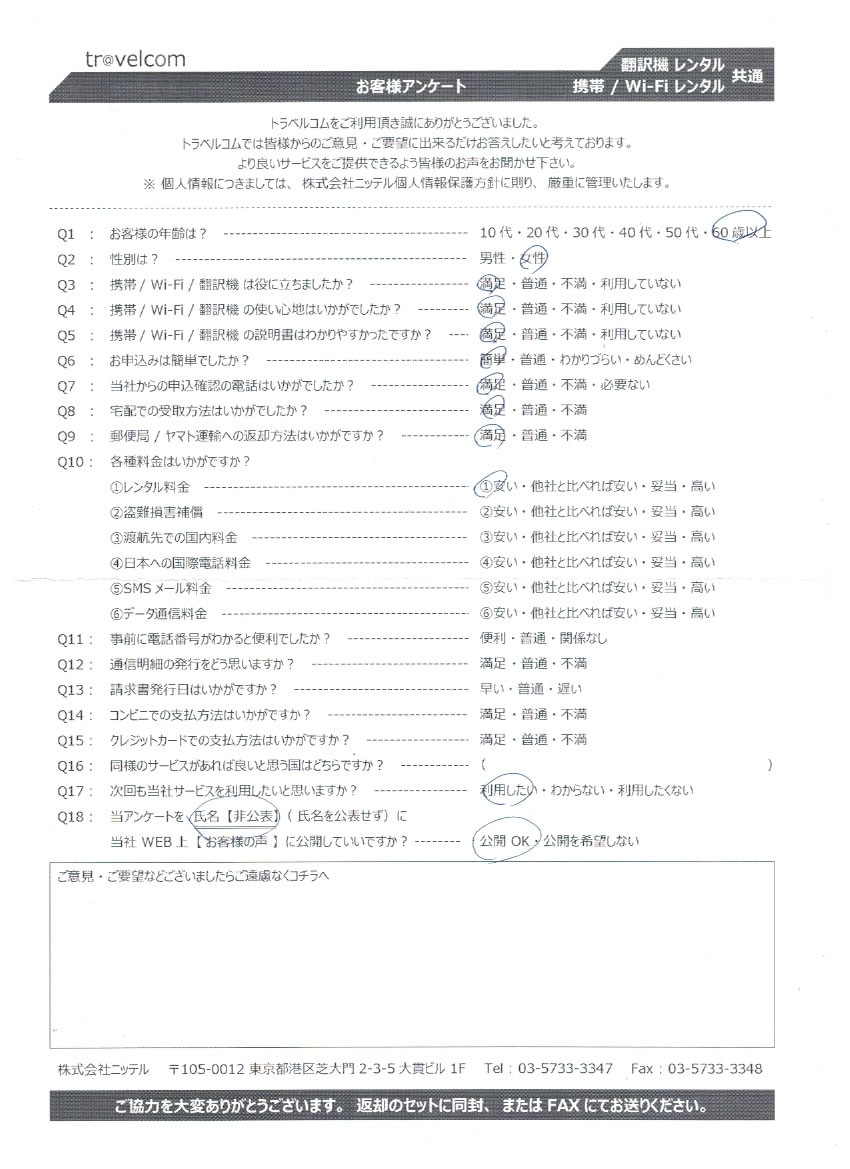 お客様からいただいたアンケートの中から【公開 OK 】と記載のアンケートを掲載します。(日付はアンケート受領日)